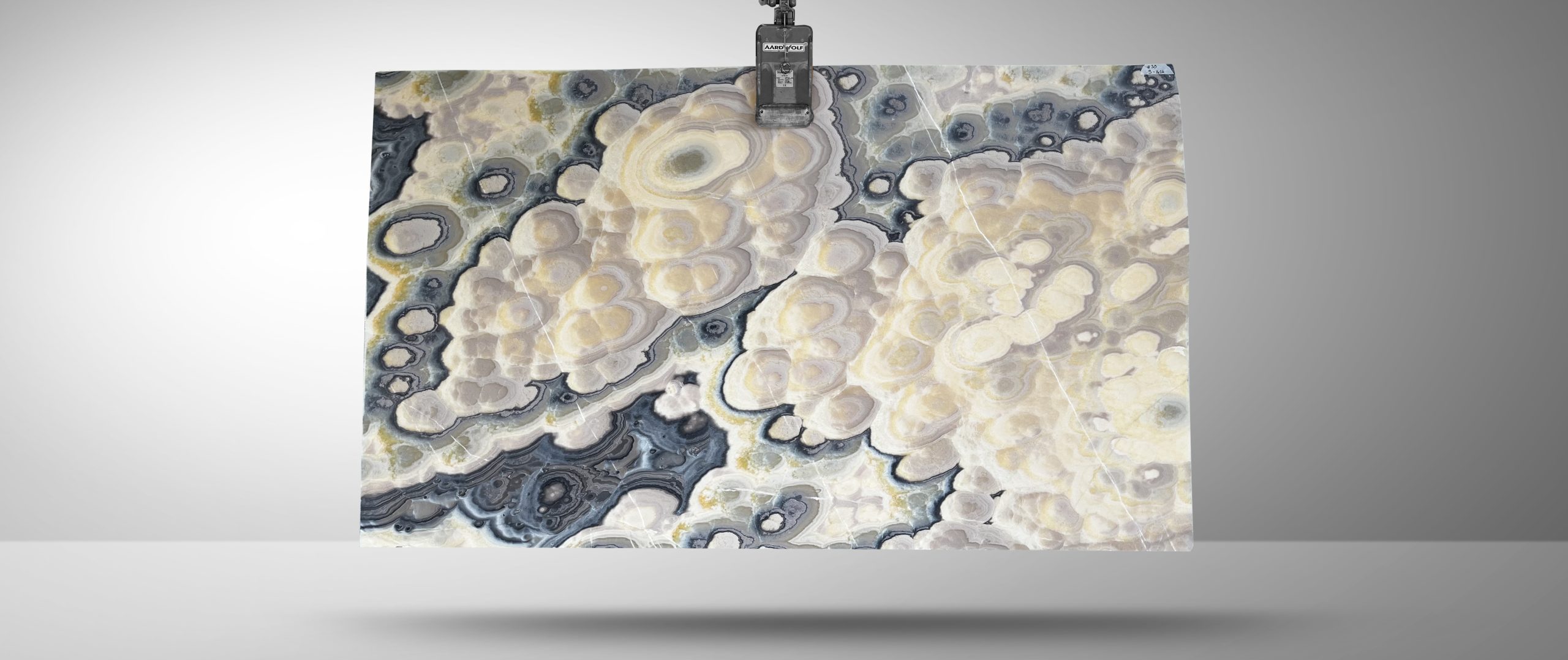 Pastello is a dense onyx with a uniquely patterned surface. The pattern, like a visual representation of a daydream, clouds of thoughts nestled within a creamy golden background is constantly shifting. Some of the slabs in this sequence are without the dark brown and purple accents others feature these colours quite dramatically. Each slab is unique, each one spectacular.